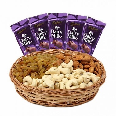 / Dry Fruits Basket with 5 Dairy Milk Chocolates